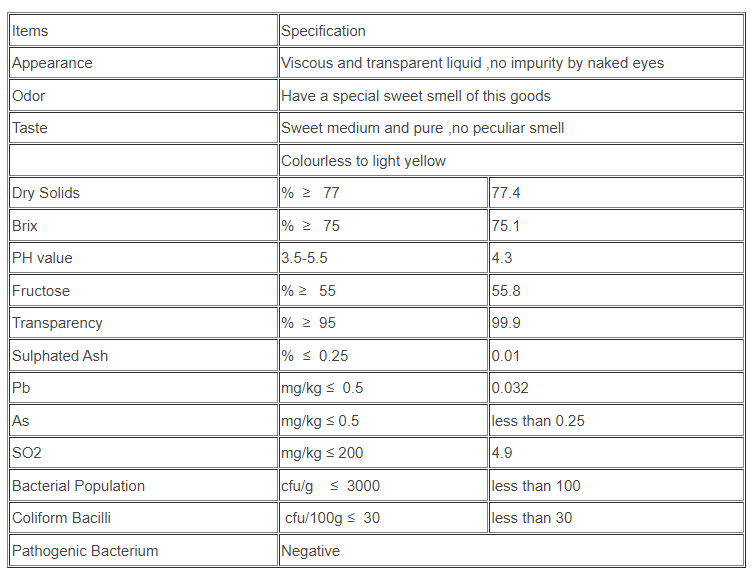 Fructose syrup is a starch sweetener made from the hydrolysis and isomerization of plant starch, and is an important sweetener. According to the content of fructose, fructose syrup is divided into three categories: the first generation fructose syrup (F42 type) contains 42% fructose; the second generation fructose syrup (F55 type) contains 55% fructose; the third generation fructose syrup Type(F90) Contains 90% fructose.