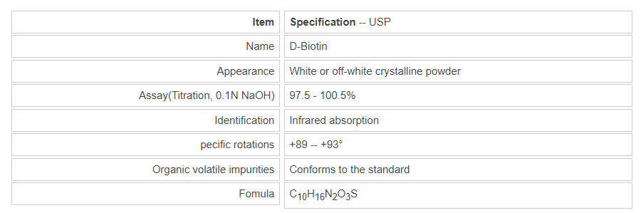 D-Biotin is completely absorbed by the body. D-Biotin is a member of the family of B vitamins, often referred to as B7, D-Biotin provides a small amount in a variety of food, although the number can be up to brewers yeast, egg yolk, liver, kidney, pancreas, milk, soybeans found , and barley. D-Biotin is involved in metabolism, tolerance and glucose utilization. D-Biotin also reduce resistance. D-Biotin is the function of essential fatty acids synthesis and metabolism of propionate. There is also evidence of antioxidant capacity. It is thought that biotin can be stored in the mitochondria. Biotin is a positive whole body is very little defects.