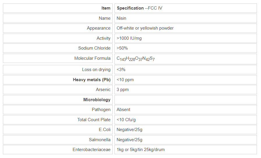 Nisin can inhibit food spoilage caused by many Gram-positive bacteria such as Lactobacillus, Leuconostoc, Pediococcus, Staphylococcus, Listeria monocytogenes, especially on the production of spores of bacteria such as Bacillus, Clostridium has a strong inhibitory effect. Typically, the production of highly heat-resistant bacterial spores, such as milk using 135 ℃, 2 seconds, ultra high temperature sterilization, non-spore bacteria mortality rate was 100%, the mortality rate of 90% of bacterial spores, and 10% The bacteria can not kill the spores. If the milk can be added to 0.03-0.05g/kg Nisin inhibition of Bacillus and Clostridium spores germinate and multiply.