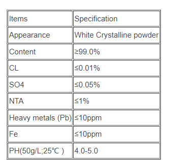 As one chelating agent, it can be used in industrial cleaning, personal and household uses, Bleaching of pulp and textiles, Micronutrients for agriculture, Photo processing, Printing ink manufacturing , Food, Polymer processing and Metal plating etc.