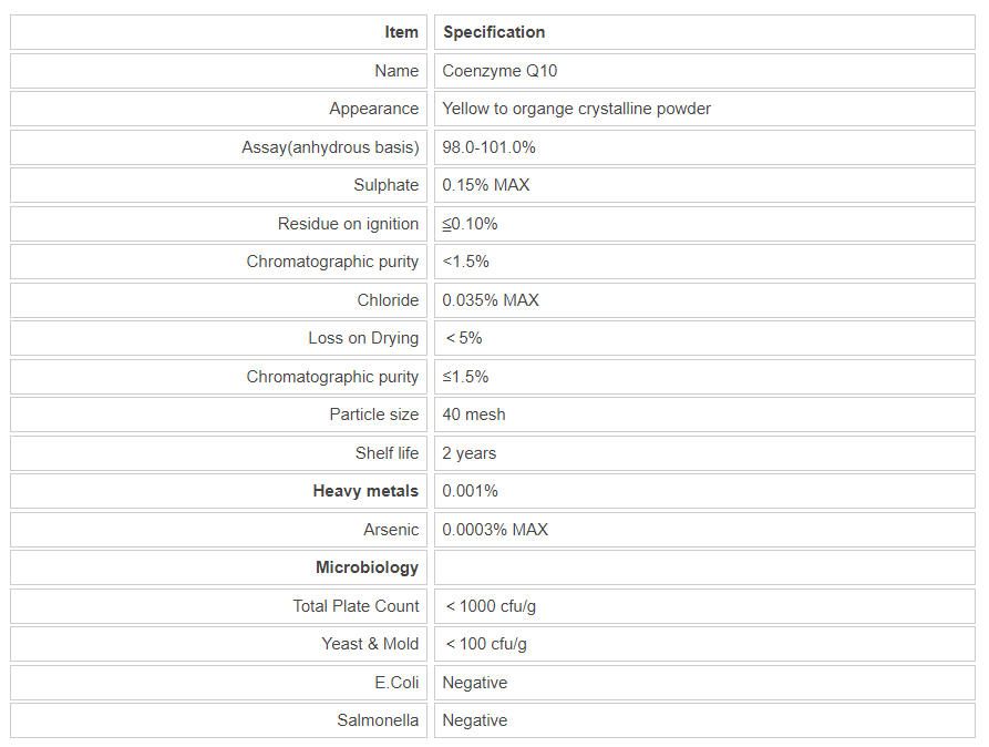 Applications:Coenzyme Q10 is widely used in nutritional supplements and food additives. With anti-fatigue, anti-aging, protect the heart, increase muscle energy, anti-hypertensive, anti-chronic fatigue syndrome role.