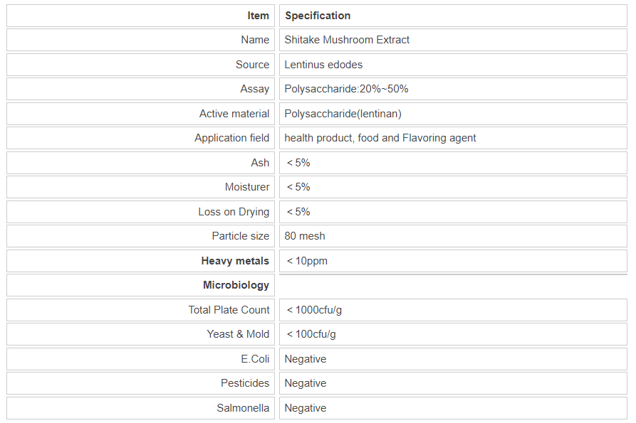 Shitake Mushroom Extract from mushrooms to extract this precious fungus out, for the treatment of hepatitis and liver protection against all forms of mutations valuable,Shitake Mushroom Extract can also reduce blood cholesterol and blood lipids level, and has anti-lipid functions, to prevent blood clots. Shitake Mushroom Extract can adjust the immune system, anti-aging. Shitake Mushroom Extract selection of mushroom fruiting bodies are extracted from the effective active ingredient, its fragrance and rich nutrition, a significant effect,Shitake Mushroom Extract can do all kinds of health products, food and spices to add ingredients.