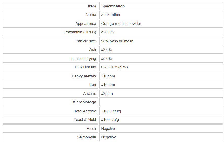 Zeaxanthin by reducing the risk of macular degeneration, support normal eye function,Zeaxanthin by blocking harmful blue light and protect the retina of the eyes and skin health.