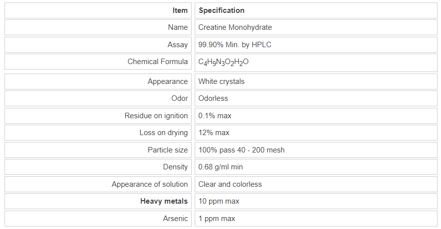Applications:Creatine Monohydrateis generally used in food, health products, fitness supplements. Creatine powder more easily than capsules and tablets absorbed by the body.