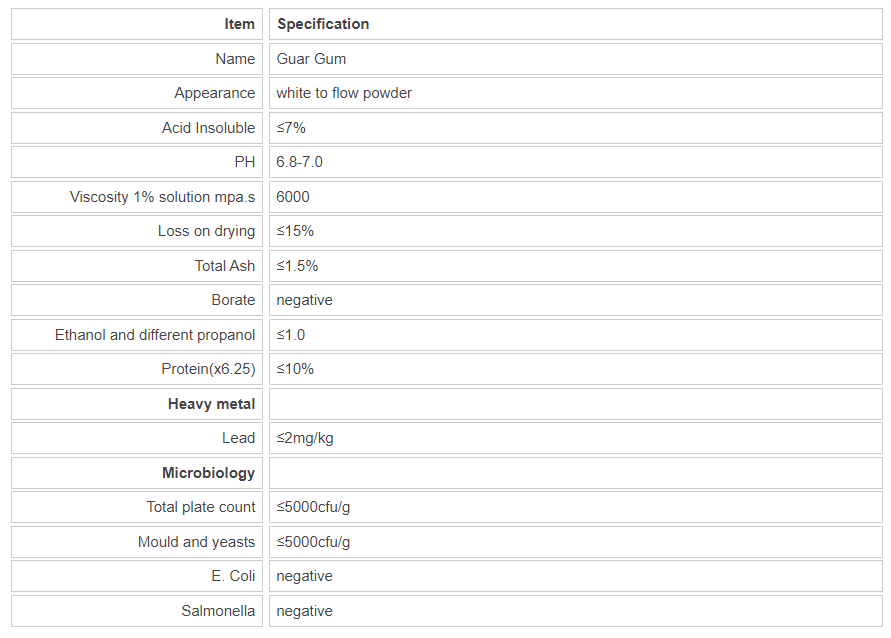 1. Guar gum in the cold such as ice cream, ice cream, frost, borneol play a role in good stabilizer to prevent ice crystals produced, plays a thickening, emulsifying effect.