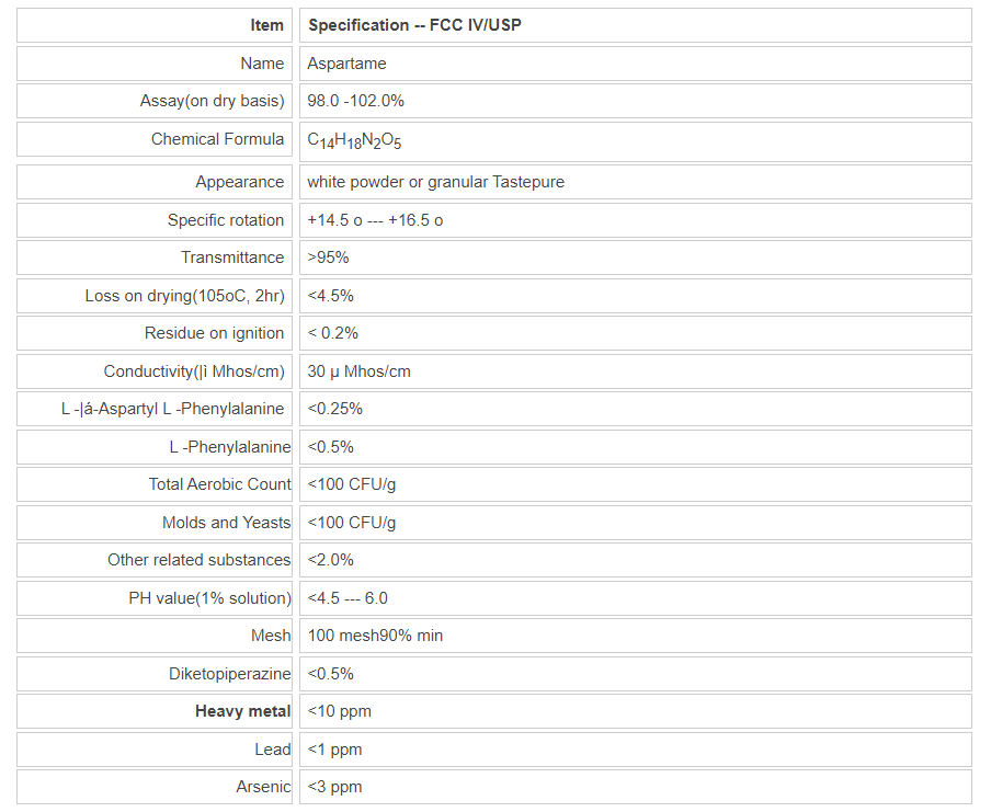 (2) Aspartame sweet taste of pure sucrose with very similar fresh and sweet, no bitter after taste and metallic taste, is by far the closest to the successful development of the sweet sugar sweetener. Aspartame 200 times sweeter than sucrose, only a small amount in the application can achieve the desired sweetness, so use in food and beverage sugar substitute aspartame, can significantly reduce the heat and will not cause tooth decay