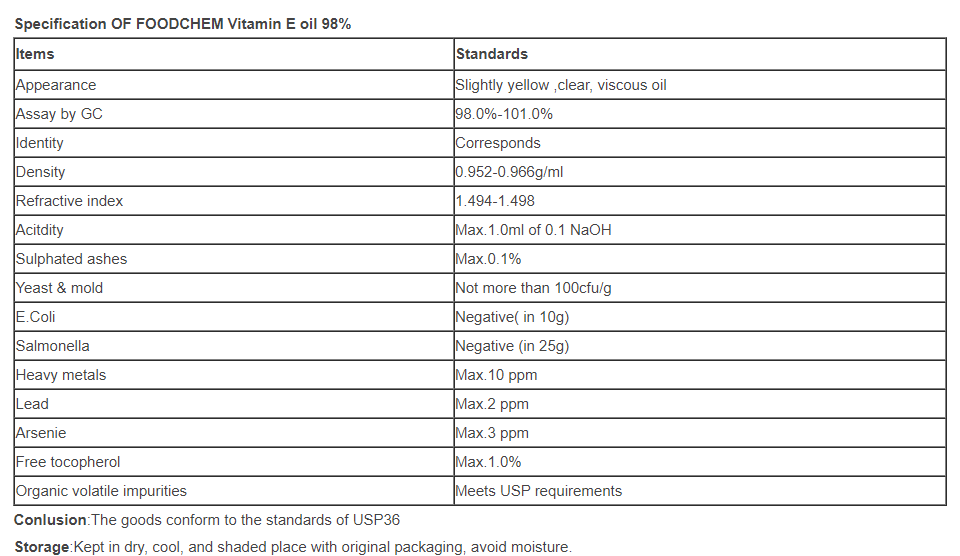 D Alpha Tocopherol, also called vitamin E, refers to a group of fat-soluble vitamins, including tocopherols, tocotrienols. Have antioxidant function, for the normal growth and fertility of animals required.