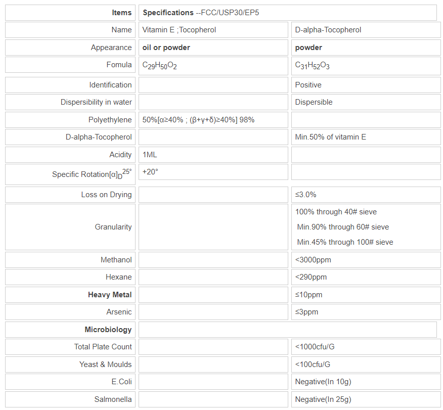 Vitamin E can promote the secretion of pituitary gonadotropins, sperm production and to promote activities to increase ovarian function, follicle increased luteal cells increased and. Vitamin E capsules to enhance the role of progesterone. Lack of fertilization is not easy when the reproductive organs or cause damage to habitual abortion. Improve lipid metabolism, leading to deficiency of plasma cholesterol (TC) and triglyceride (TG) increased, the formation of atherosclerosis. Oxygen-sensitive, easily oxidized, it can protect other easily oxidized substances, such as unsaturated fatty acids, vitamin A and ATP, etc. Reduce the generation of lipid peroxidation, protecting body cells from free radical toxicity, fully protected material specific physiological functions. Stable part of the cell membrane and intracellular lipids, reduce red blood cell fragility, to prevent hemolysis. Deficiency hemolytic anemia. Large doses can promote the proliferation of capillaries and small blood vessels and improve peripheral circulation.