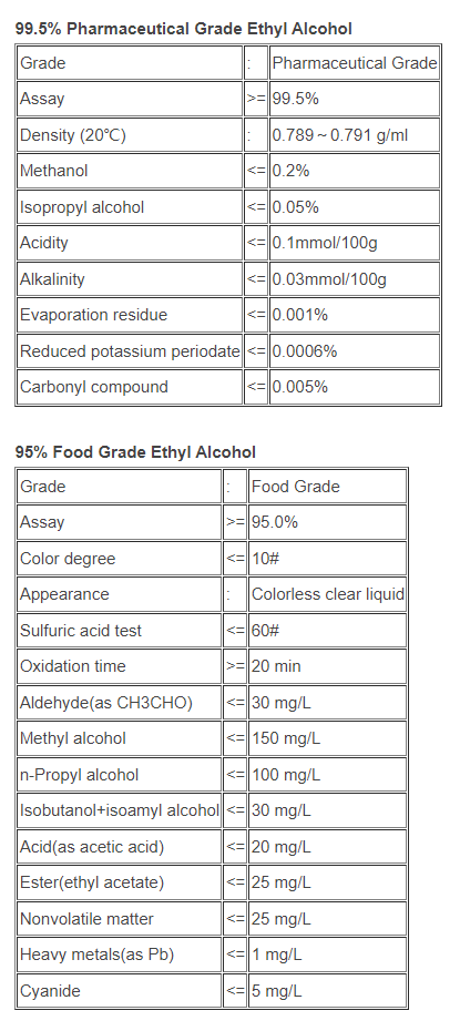 4. Can be used for preparing acetaldehyde, ethyl ether, ethyl acetate, ethyl amine and other chemical raw materials.