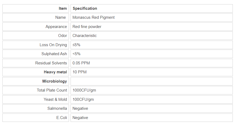 Applications:Monascus Red pigment can be widely used in food, pharmaceutical, cosmetics industry and others.