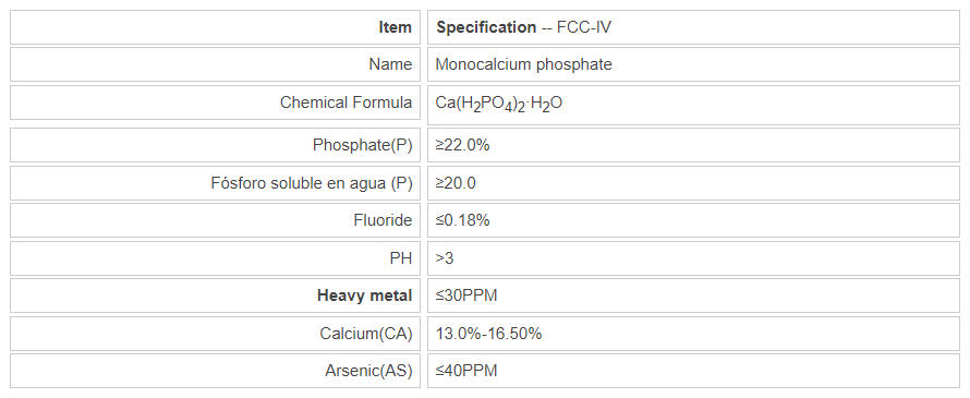 Monocalcium phosphate physical and chemical properties: white powder. The relative density of 2.22 (16 ℃). Slightly hygroscopic, soluble in hydrochloric acid, nitric acid, water-soluble, Monocalcium phosphate is almost insoluble in ethanol. At 30 ℃, 100ml water soluble calcium dihydrogen phosphate 1.8g. Acidic aqueous solution, heated solution is then hydrolyzed to DCP. At 109 ℃ when the loss of crystal water, 203 ℃ when the decomposition into partial calcium phosphate. Monocalcium phosphate is a special chemical substance often used as food additive in many processed foods. Monocalcium phosphate are the two main ingredients in baking powder, with or sodium bicarbonate. Monocalcium phosphate features the main agent, because Monocalcium phosphate is a combination of alkaline or acid base reaction will result in carbon dioxide E341, Monocalcium phosphate and thus play a role in the product. E341 with convenient, Monocalcium phosphate without changing the pH of the products included in the same amount of acid-base reaction. Monocalcium phosphate, seem to have any form of health problems, because the Monocalcium phosphate is a common baking powder.