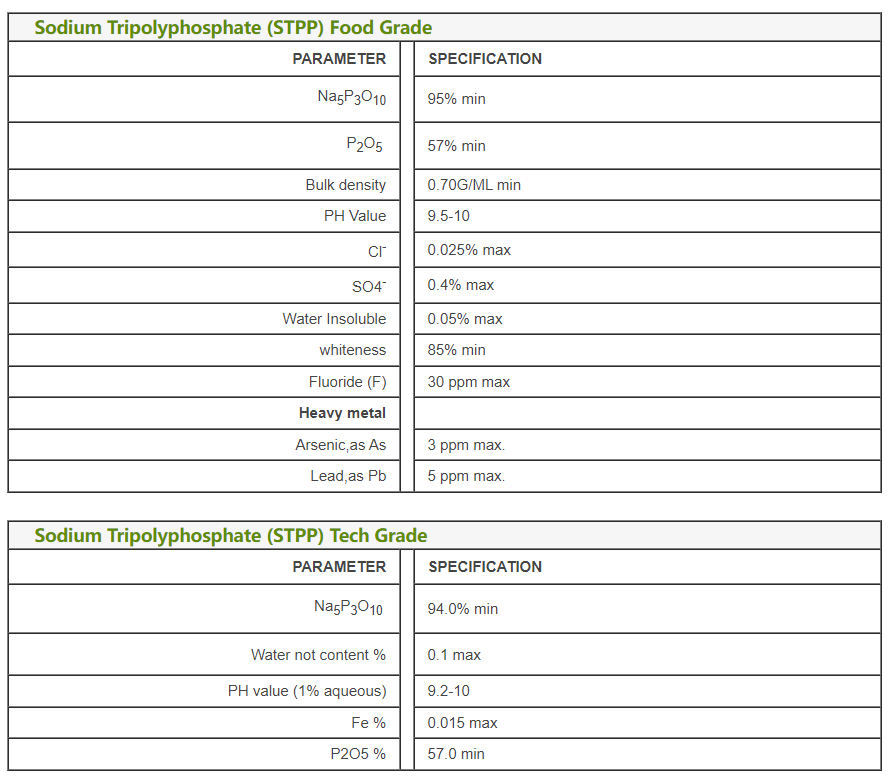 Sodium Tripolyphosphate (STPP) Food Grade: Used in meat food, canned meat, fruit juice and milk products, such as soybean milk for quality improver