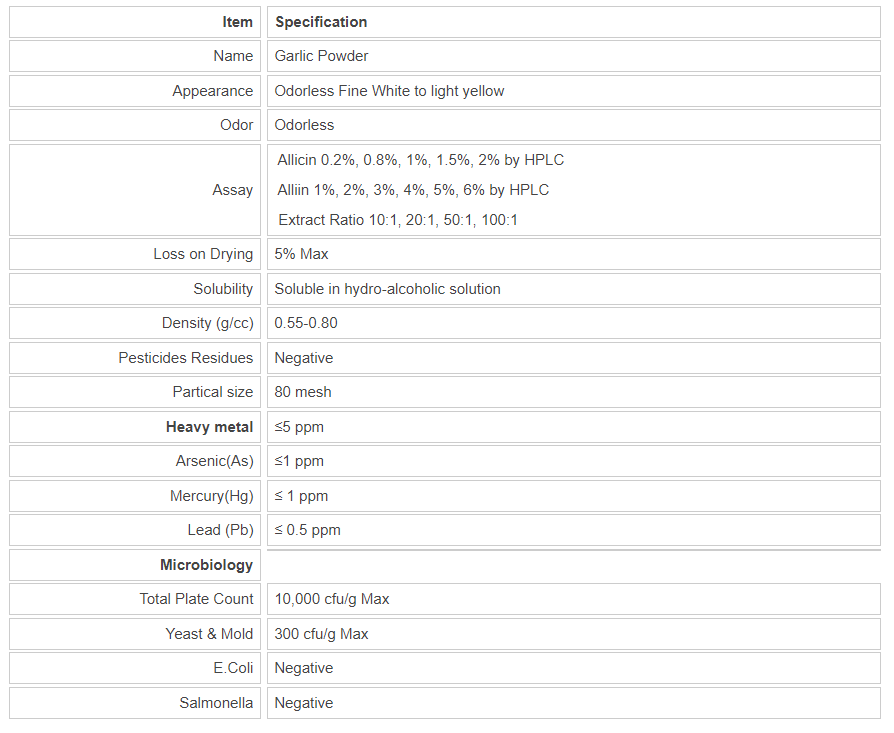 Function:Garlic Powder main functions: antibacterial and bactericidal, clean heat and toxic substances, dissolve blood stasis, reduce blood pressure and cholesterol, protect brain cells, anti-tumor, enhance human immunity and aging.