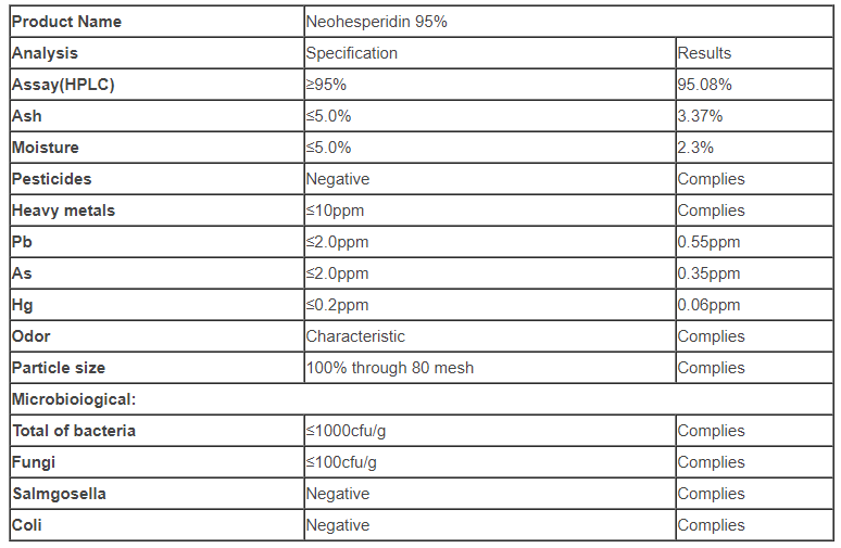 Applications:Neohesperidin Dihydrochalcone as sweetener and flavour enhancer, it can be used well in food, An example of this is 'creaminess' in dairy foods such as yogurt and ice cream.